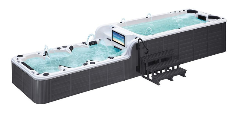 Spa Solutions bietet Ihnen eine sorgfältige Auswahl verschiedener Swimspas. Die Produkte wurden speziell für Kunden entwickelt, die zwischen Entspannung und Fitness keine Kompromisse eingehen möchten. Jedes Modell kombiniert den Luxus eines erstklassigen Whirlpools mit der Funktionalität und dem Vorteil einer Gegenstromanlage, welche ideal für Schwimmtraining und Wassergymnastik ist.