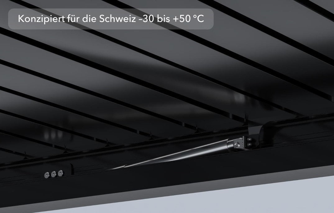 The pergola combines Swiss quality thinking with sophisticated technology - for lasting stability and elegance in any weather.