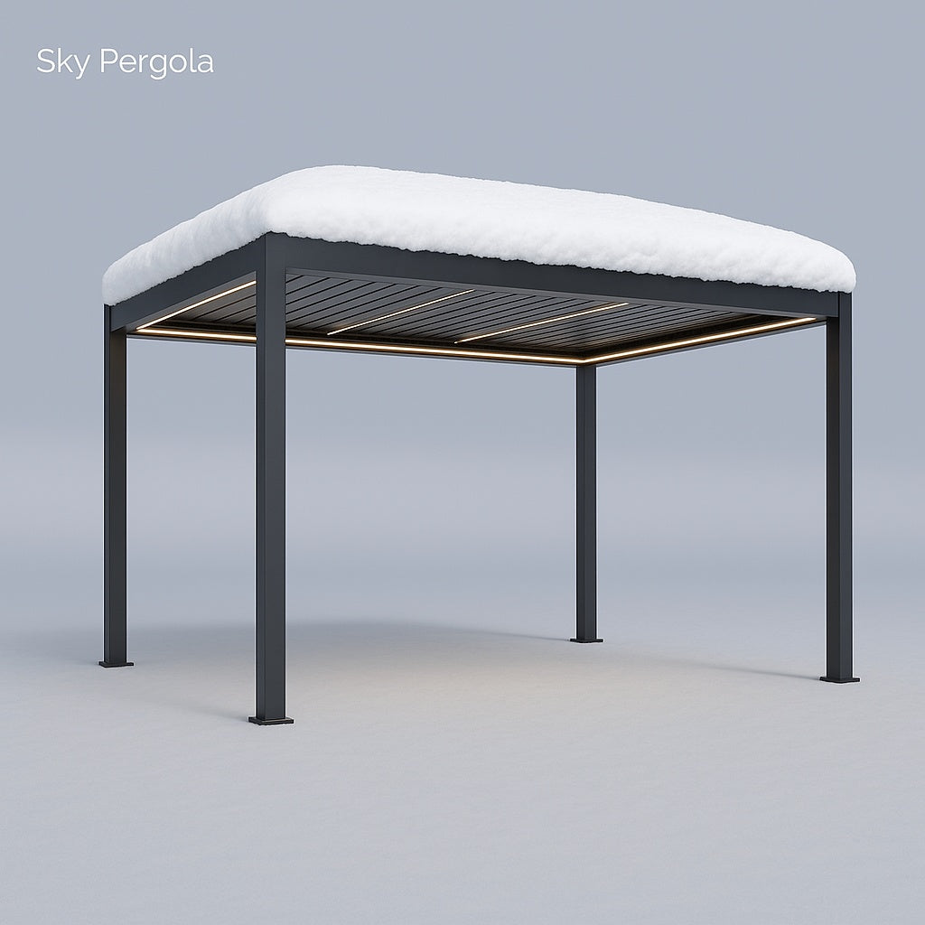 Depending on the model, our Sky Pergola models are designed for snow loads between 50 kg/m² and 150 kg/m². In alpine regions or during heavy snowfall, we recommend leaving the slats open so that the snow can fall through unhindered and there is no excessive load on the roof.