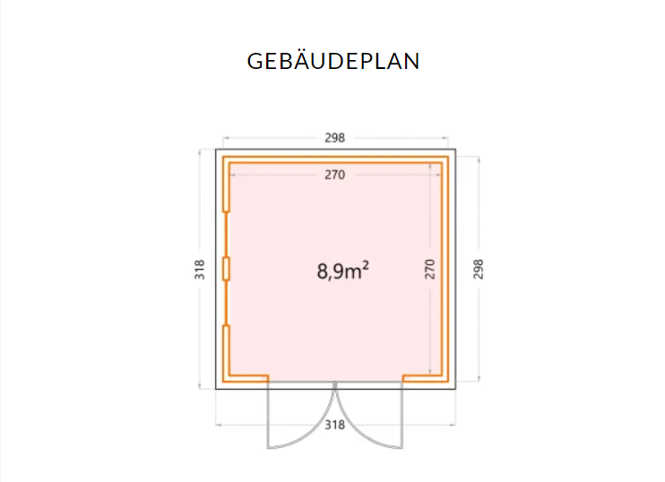 With an internal area of 8.9 m², the garden shed offers enough space to use as an office, additional living space or for storing garden tools and furniture. The practical dimensions of the garden shed are ideal for a variety of uses:
