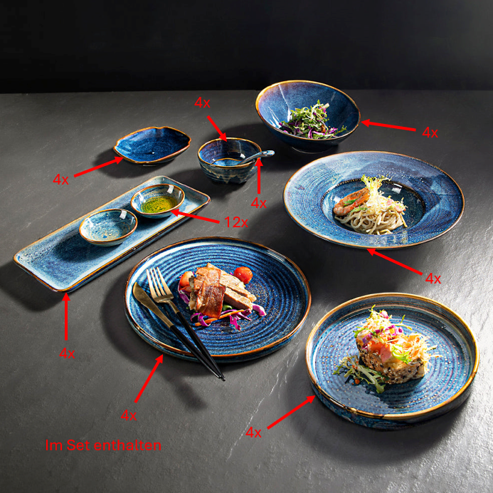Yes, the set includes plates in different sizes and shapes, including starter, soup, pasta and main course plates to ensure that every meal is served in style.