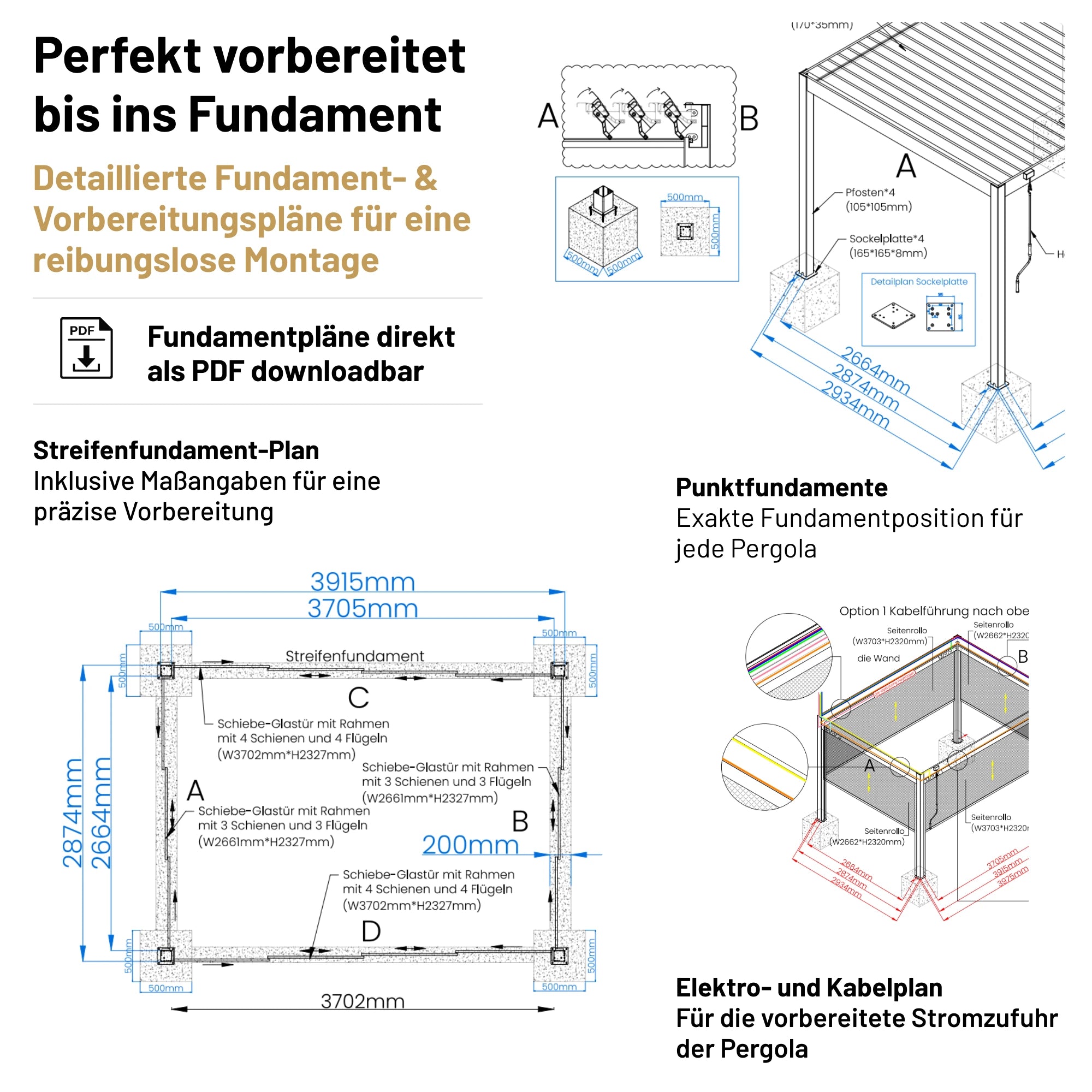 Would you like to build your pergola yourself? No problem. The pergola is designed so that it is easy to assemble even without any manual experience. Thanks to detailed instructions (similar to IKEA), multilingual documentation and video tutorials, you can assemble it step by step. All instructions and videos can be found here: Instructions