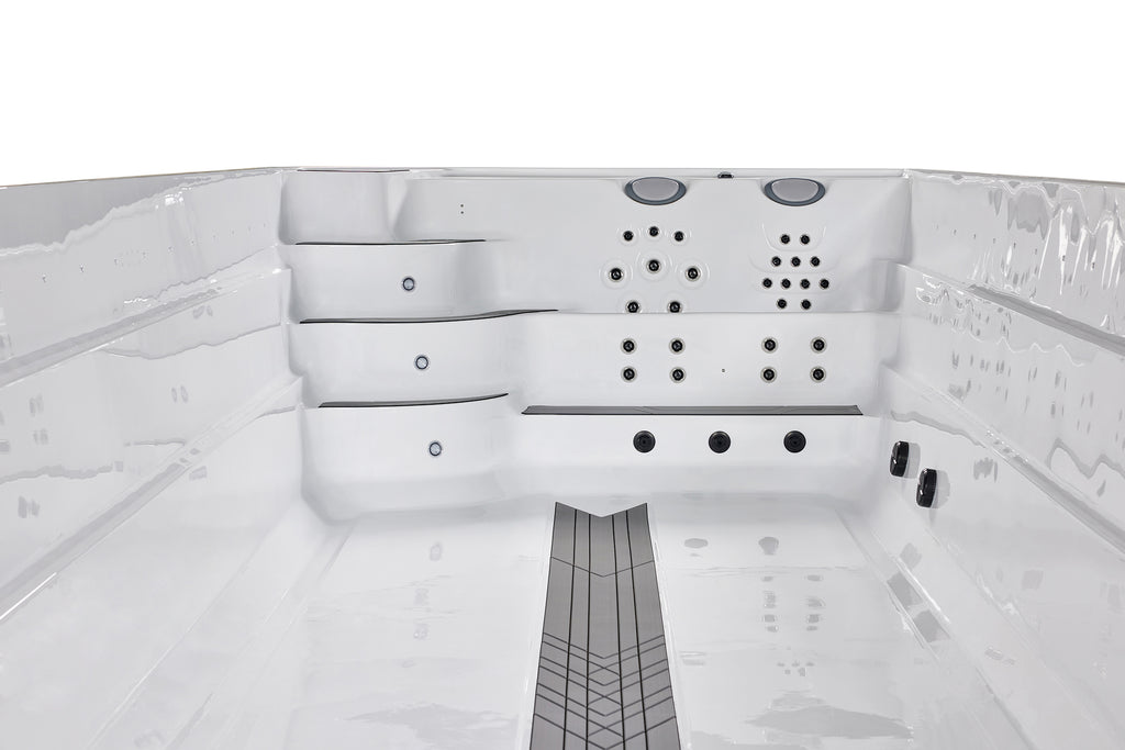 The powerful counter-current system with three 3.0HP pumps and U-shaped swimming jets ensures a powerful, even flow - ideal for intensive swimming training and maximum fitness in your own spa.