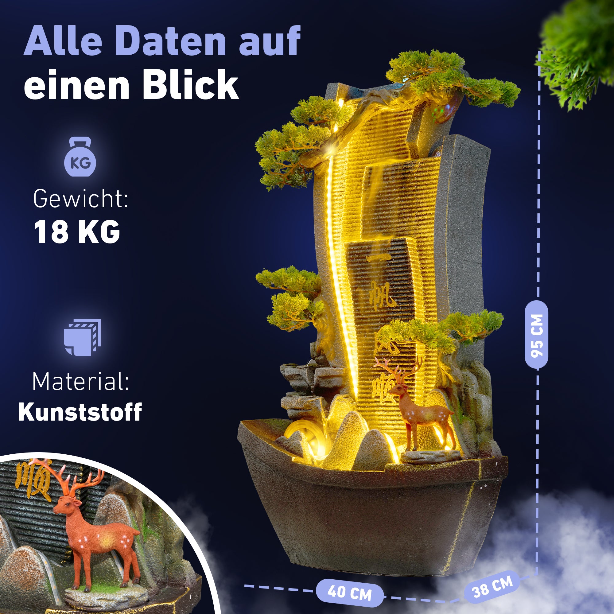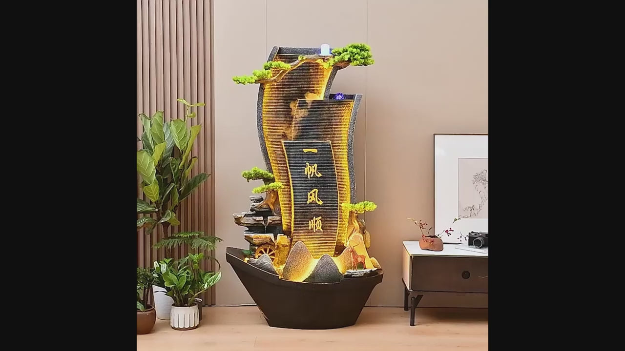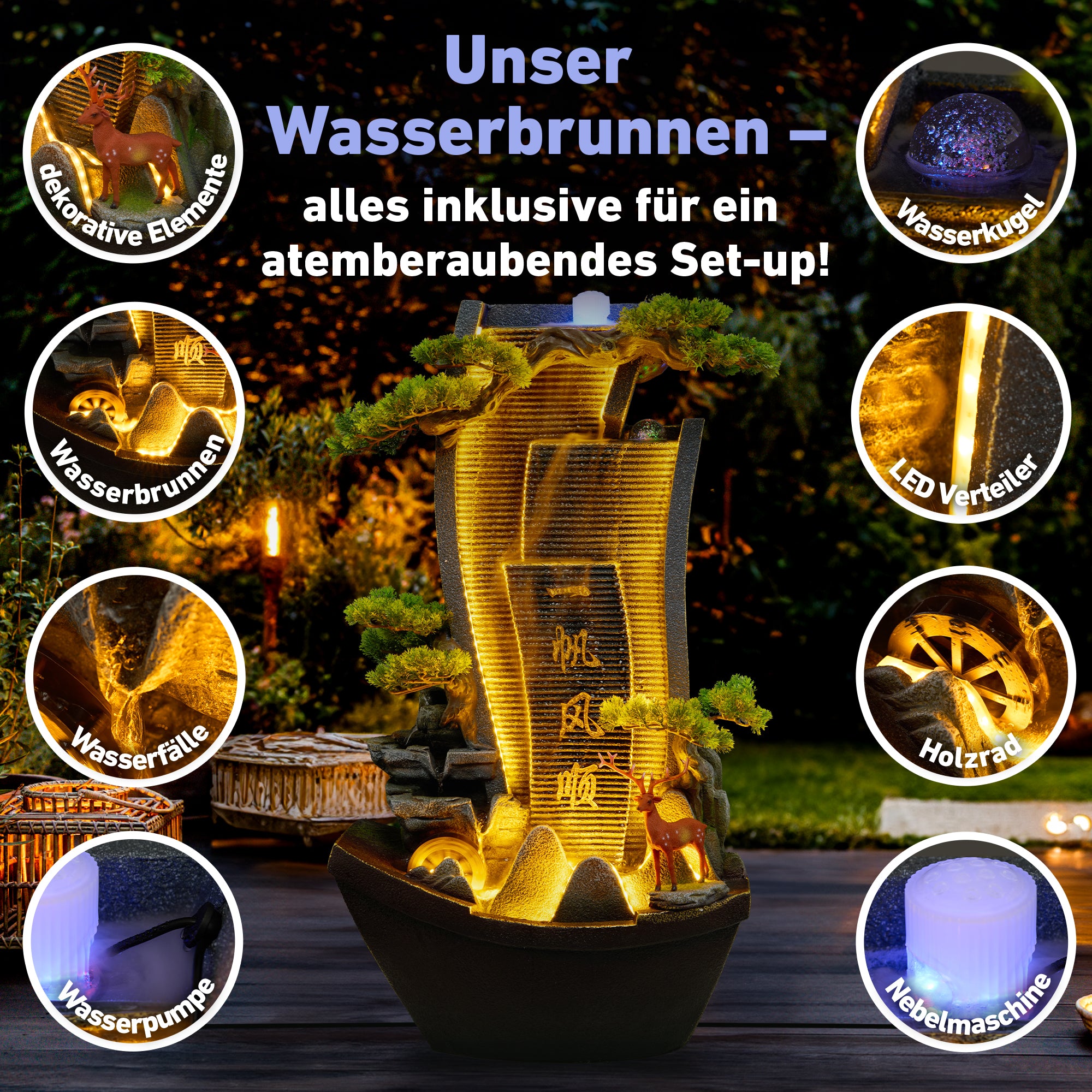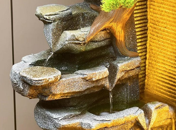 The integrated fog machine gives the water fountain a mystical aura by creating a gentle mist that dances elegantly around the waterfall.