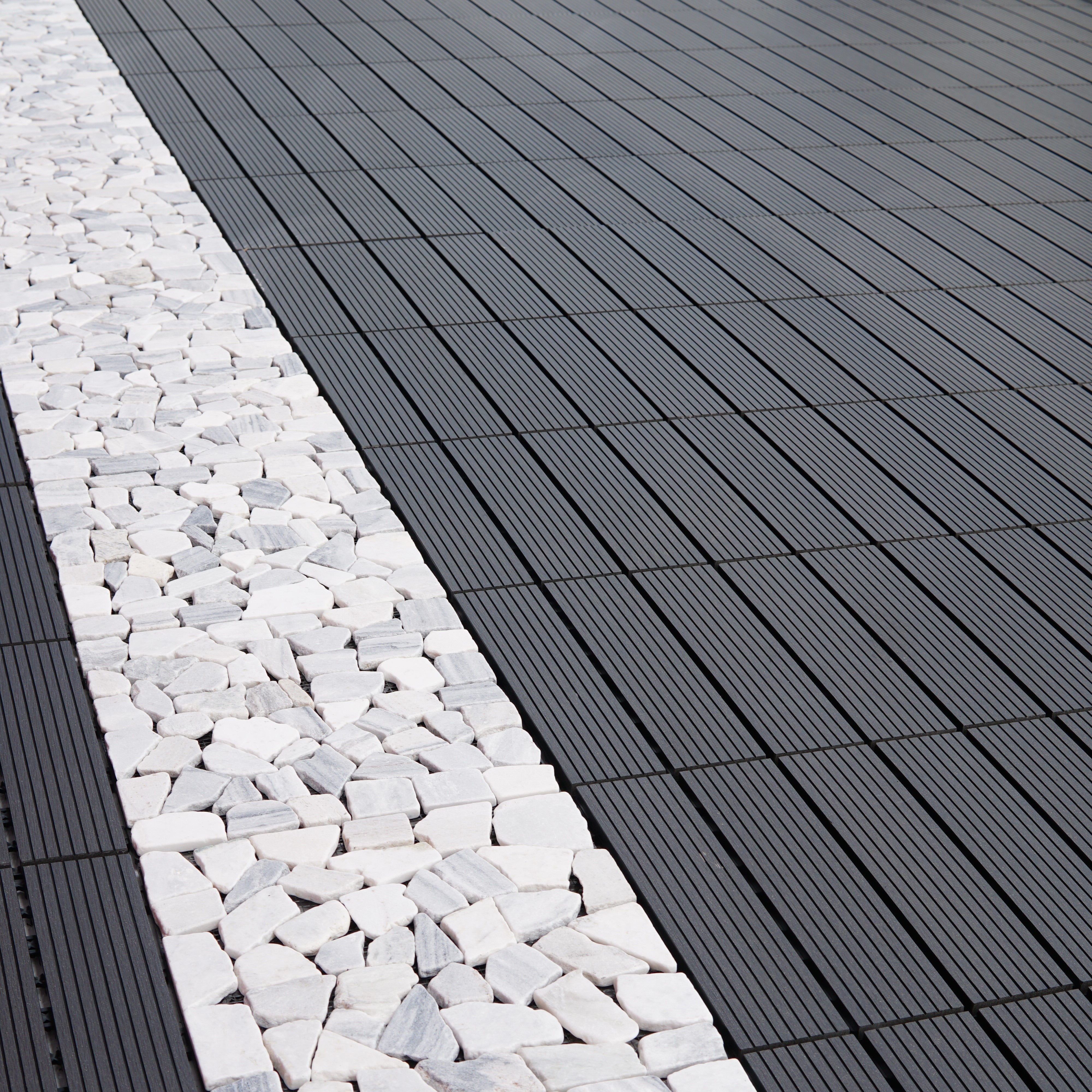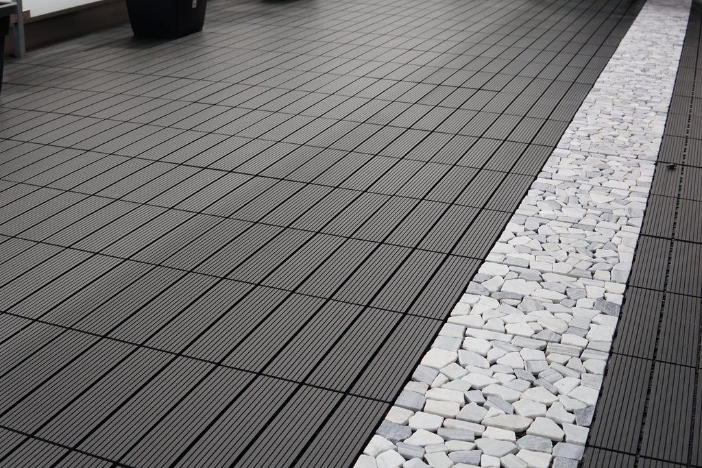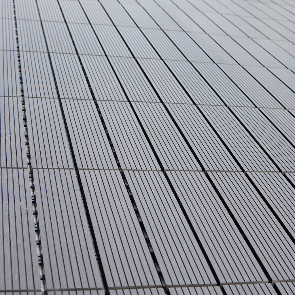 • Weather resistance: Made from a combination of wood and synthetic fibers, our click tiles offer excellent resistance to the elements such as sun, rain and snow.