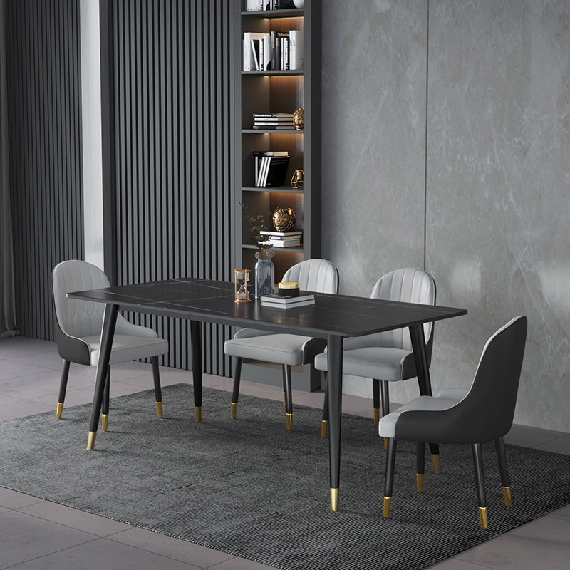 Dieser elegante Esstisch kombiniert zeitgenössischen Stil mit modischer Anziehungskraft. Mit abgerundeten Ecken und den matt-schwarzen Beinen mit goldenen Füssen bietet er Platz für 6-8 Personen. Die Tischplatte aus Kunstmarmor verleiht dem Ensemble eine raffinierte Note.