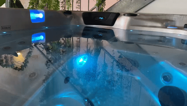 Quatre coins éclairés donnent des accents d'ambiance et assurent une atmosphère stylée pendant le bain de froid - un point fort visuel même la nuit.