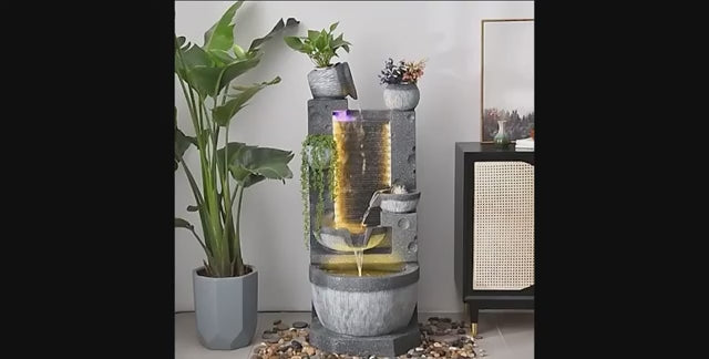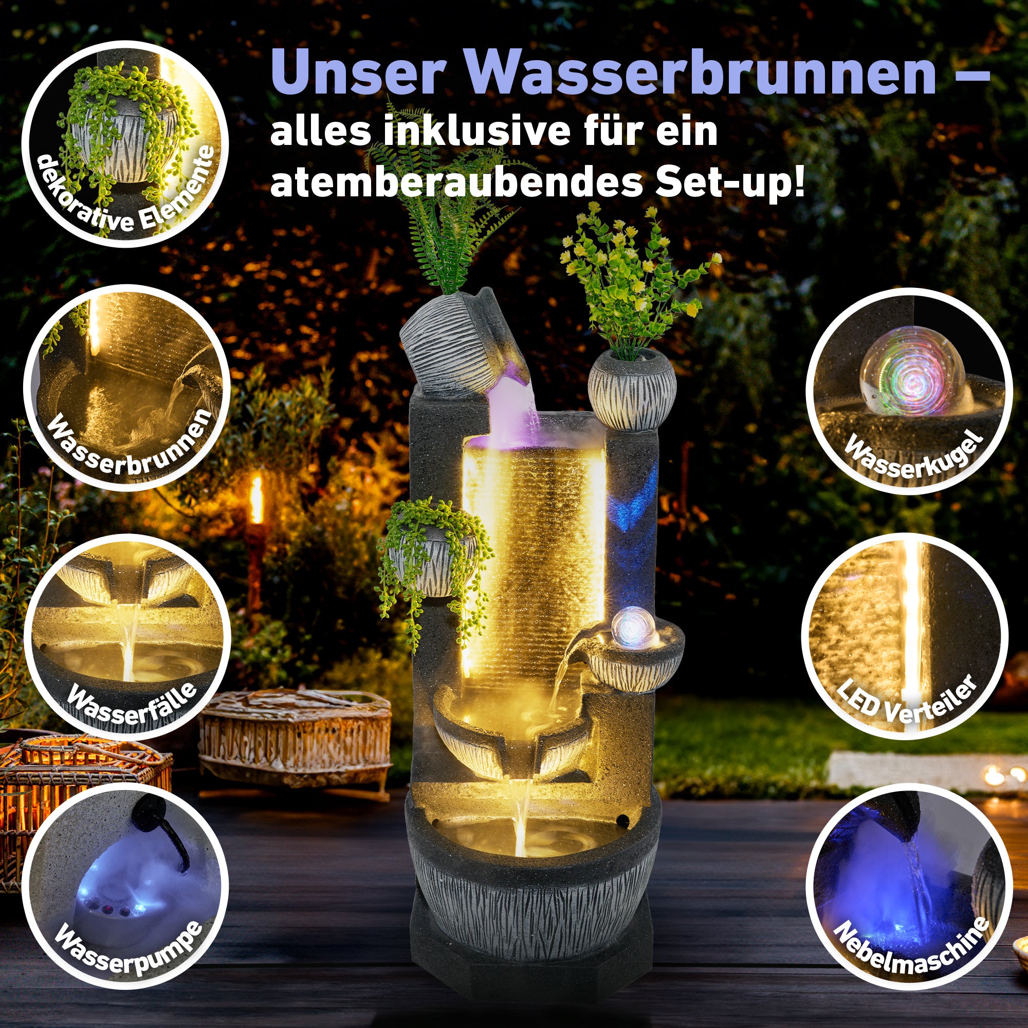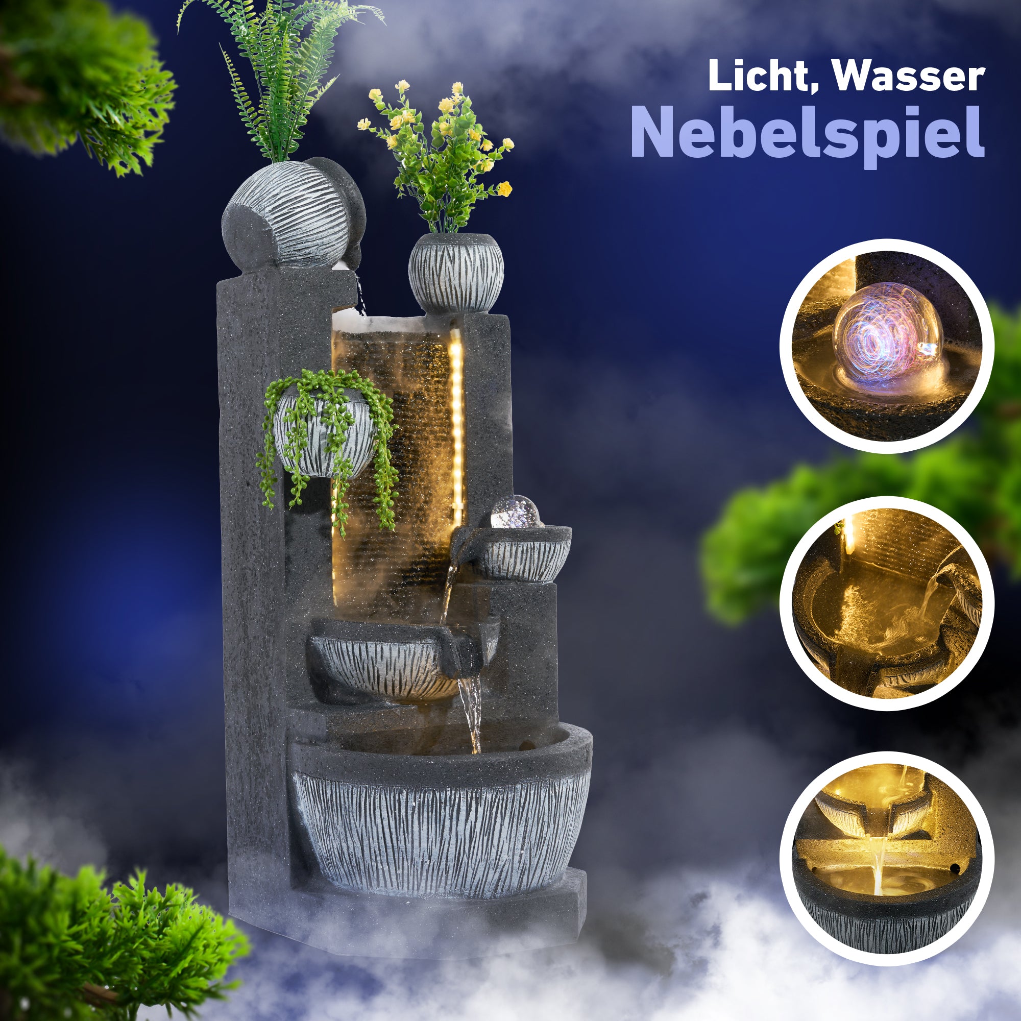 La machine à fumée intégrée confère à la fontaine une aura mystique en produisant une douce brume qui danse élégamment autour de la chute d'eau.