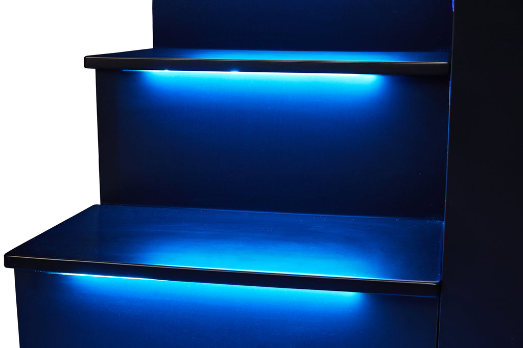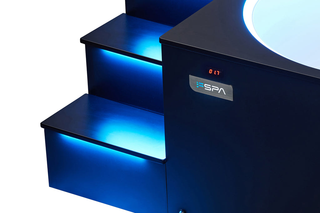 L'éclairage LED discret sur les escaliers extérieurs assure un aspect élégant et une utilisation sûre, même dans l'obscurité. L'ambiance est complétée par l'éclairage intérieur intégré qui fait briller l'eau en douceur et crée une atmosphère relaxante - parfaite pour une expérience Cold Plunge exclusive.