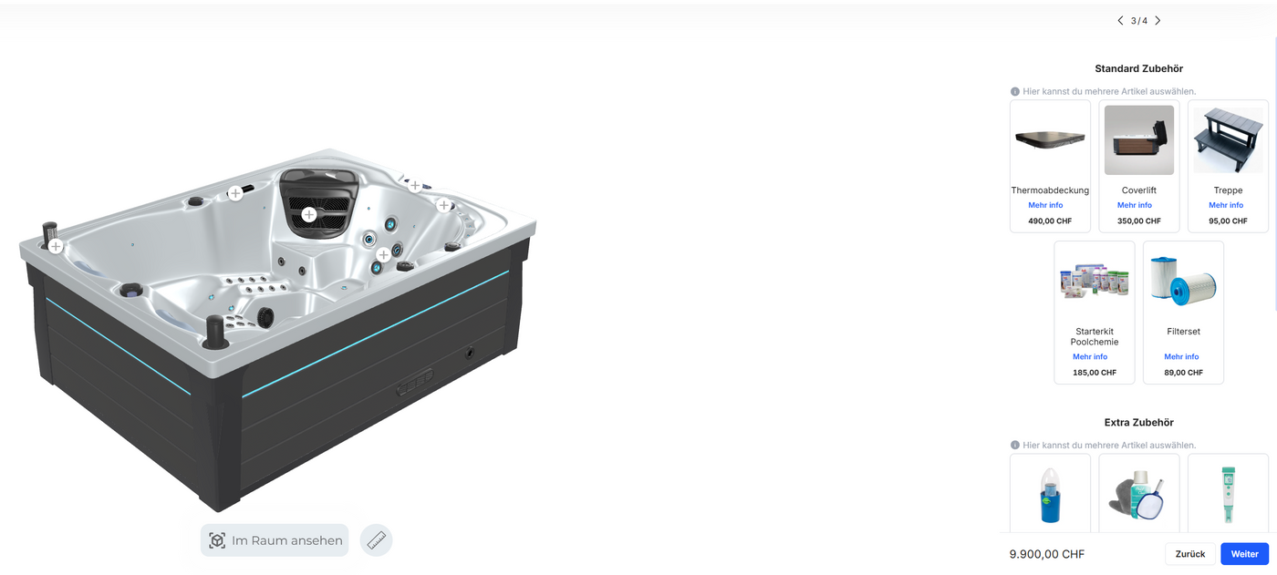 Im Konfigurator siehst du deine Spa- oder Pergola-Lösung von Anfang an realistisch.