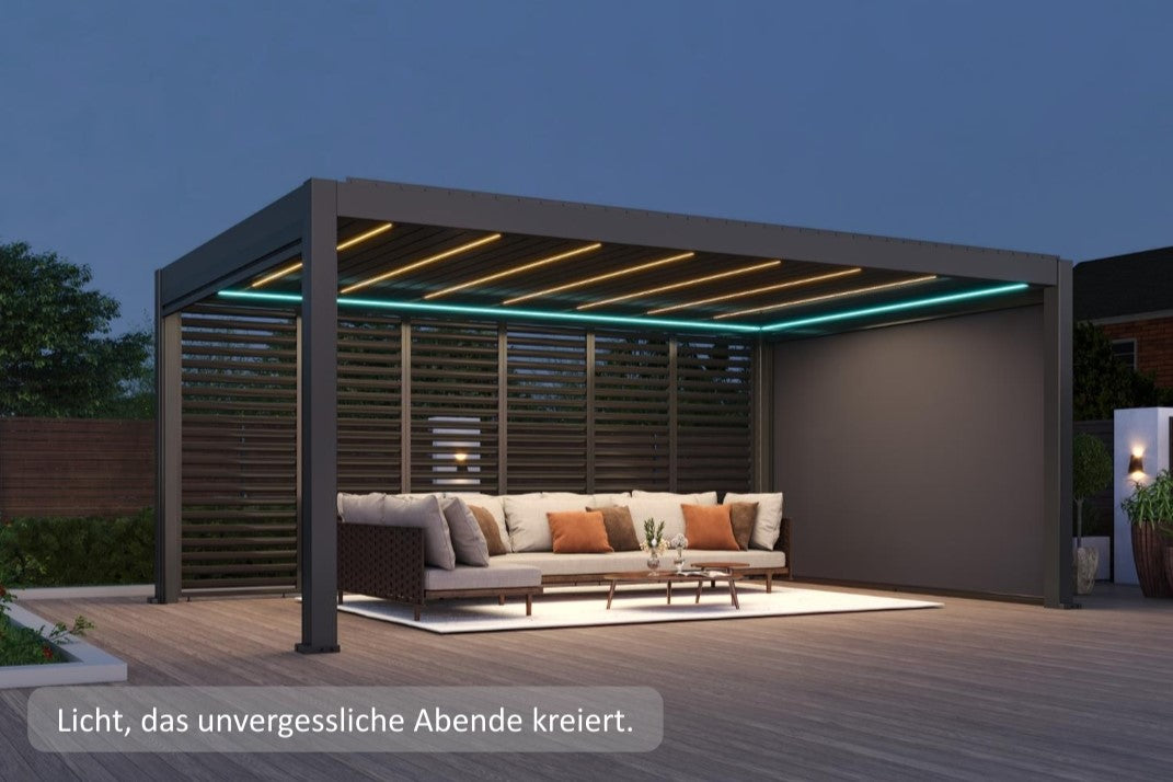 La pergola SkyMax Ultra combine une stabilité maximale avec un design moderne et une technique innovante - pour un confort maximal en plein air.
