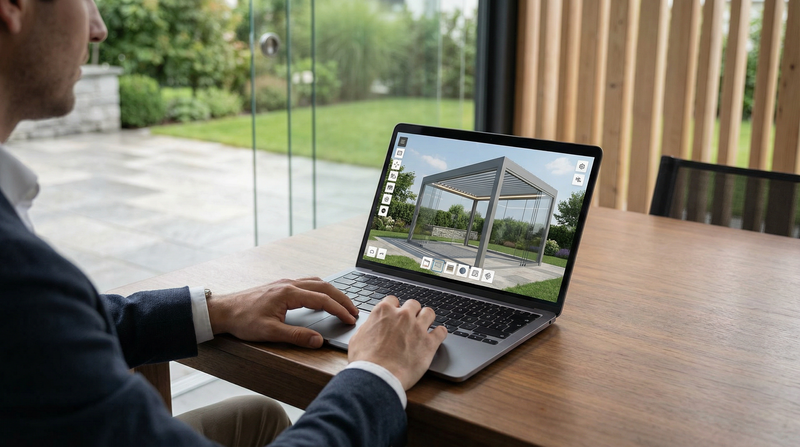 Im Konfigurator siehst du deine Sky Pergola von Anfang an realistisch.