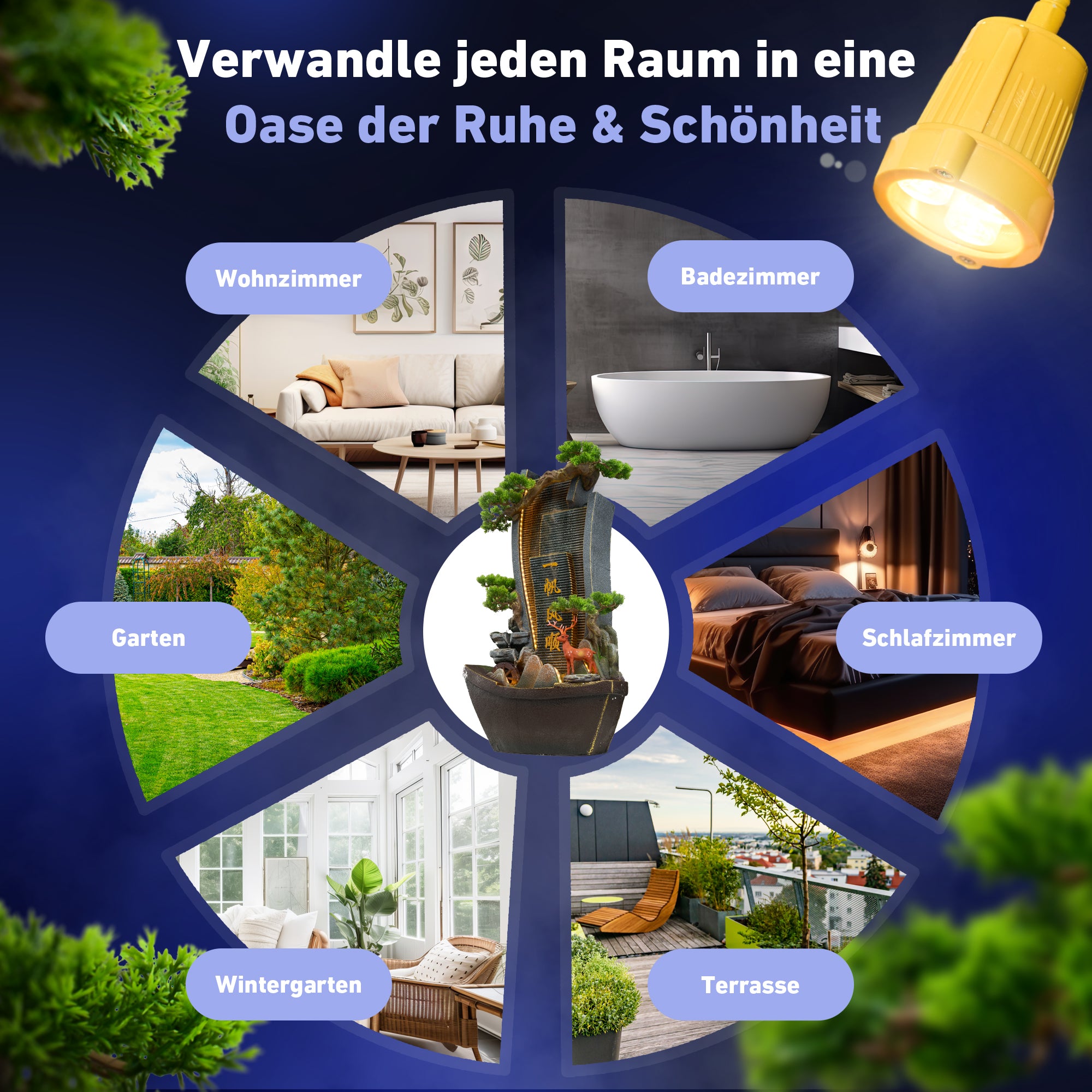 Oui, vous pouvez utiliser la fontaine aussi bien à l'intérieur qu'à l'extérieur. Elle crée une atmosphère agréable dans le salon, le bureau ou le jardin et assure partout une présence apaisante.