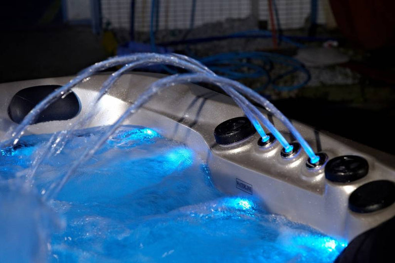 La lumière sous-marine LED de 5 pouces, combinée à quatre champignons d'eau bouillonnants et une triple cascade, crée une atmosphère apaisante et visuellement impressionnante.