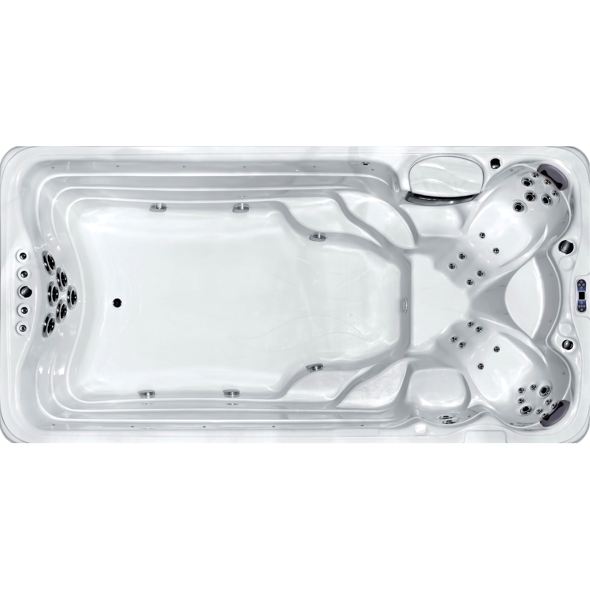 Il potente sistema controcorrente con tre pompe da 3,0HP e getti di nuoto a forma di U assicura un flusso potente e uniforme, ideale per l'allenamento intensivo del nuoto e il massimo del fitness nella vostra spa.