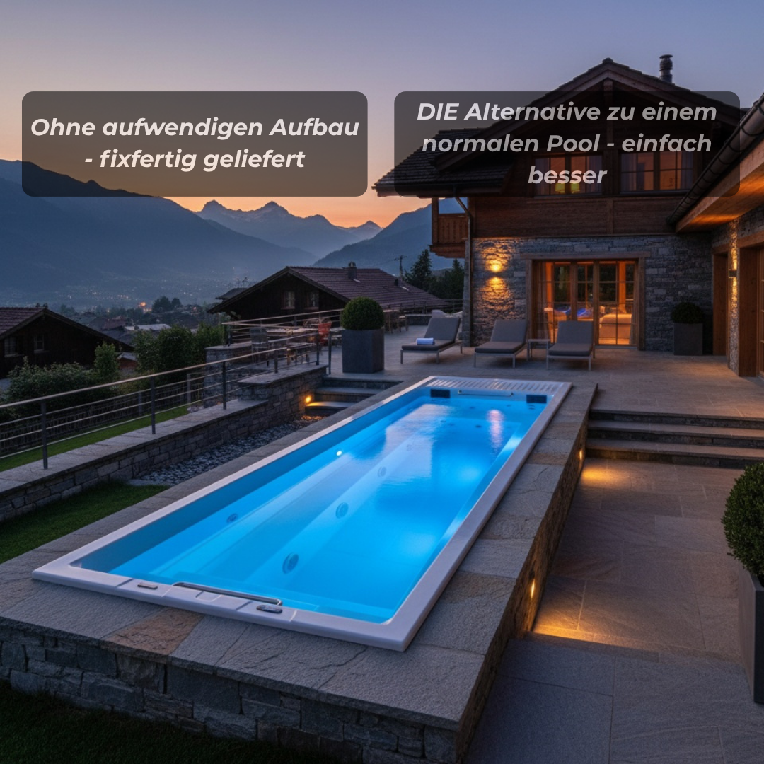 Le nostre minipiscine combinano la qualità del marchio americano con la comprensione del design europeo. Ogni swimspa è dotata di componenti di alta qualità come i comandi Balboa, le vasche in acrilico USA Aristech e i potenti sistemi di pompaggio. Sia per il nuoto sportivo controcorrente che per un massaggio mirato, i nostri modelli offrono la massima funzionalità in uno spazio compatto. La combinazione di tecnologia, comfort e durata rende le nostre minipiscine uniche nel loro genere, indipendentemente dal fatto che si scelga un modello compatto da 3,70 m o un sistema multizona da 6 m.