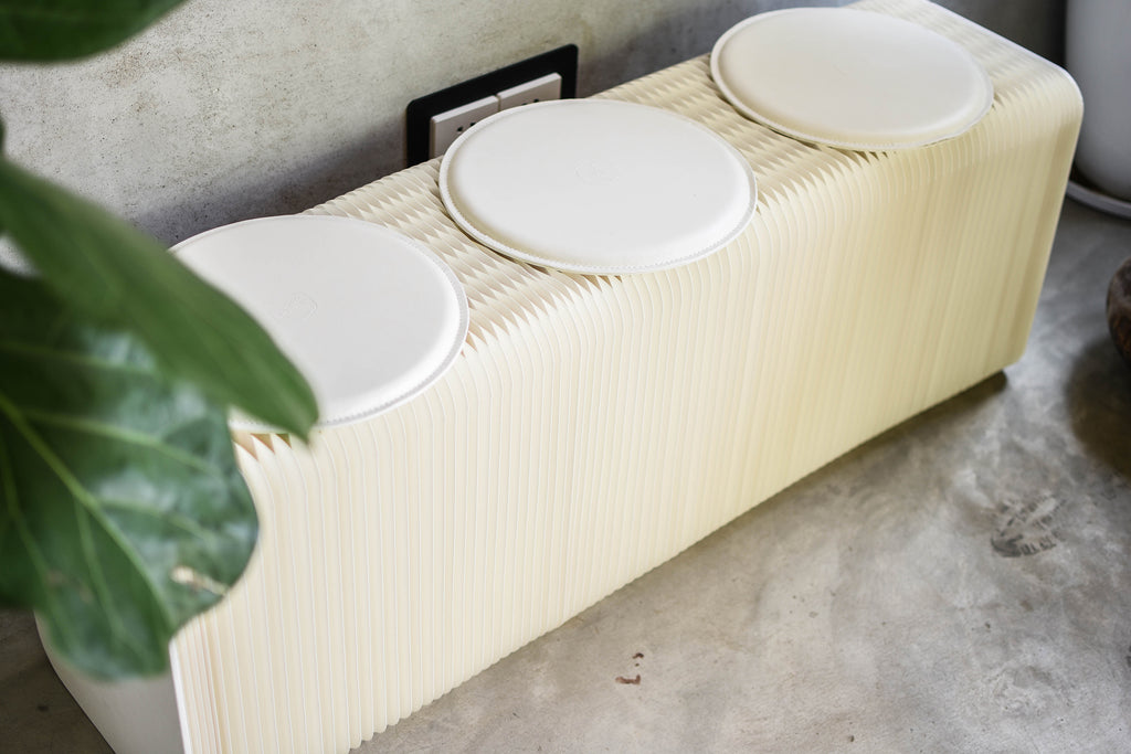 Il banco iPaper può essere esteso fino a una lunghezza di 3 metri e può essere posizionato in modo flessibile in qualsiasi direzione desiderata, sia in forma rotonda, ondulata o diritta.