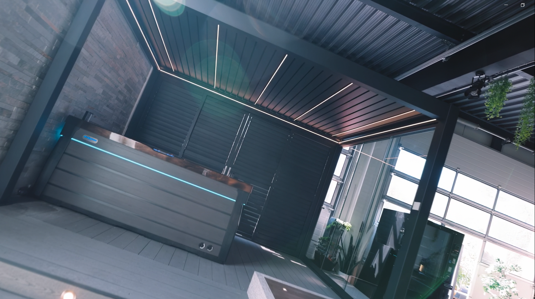 Le nostre pergole Sky sono dotate di un tetto a lamelle intelligente che può essere aperto e chiuso con la semplice pressione di un pulsante. Le grondaie integrate garantiscono una piacevole asciugatura anche in caso di pioggia estiva. Grazie ad accessori ben studiati, potrete utilizzare la vostra pergola Sky tutto l'anno, con il sole, il vento o la pioggia.