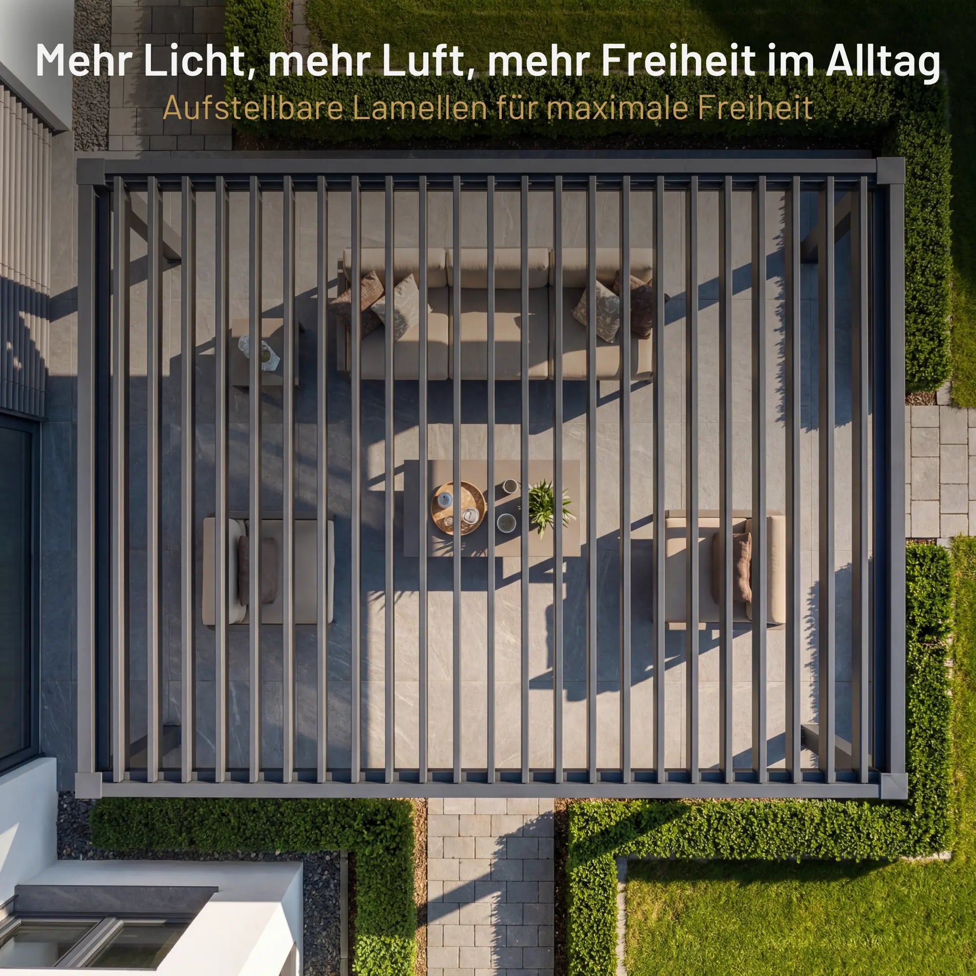 In molti Paesi la pergola è da tempo parte integrante di giardini e terrazze di alta qualità, e anche in Germania e Svizzera sta diventando un must assoluto. Che si tratti di un giardino, di una piscina, di un patio o di una terrazza sul tetto: una pergola Sky aggiunge immediatamente stile, comfort e funzionalità a qualsiasi spazio esterno.