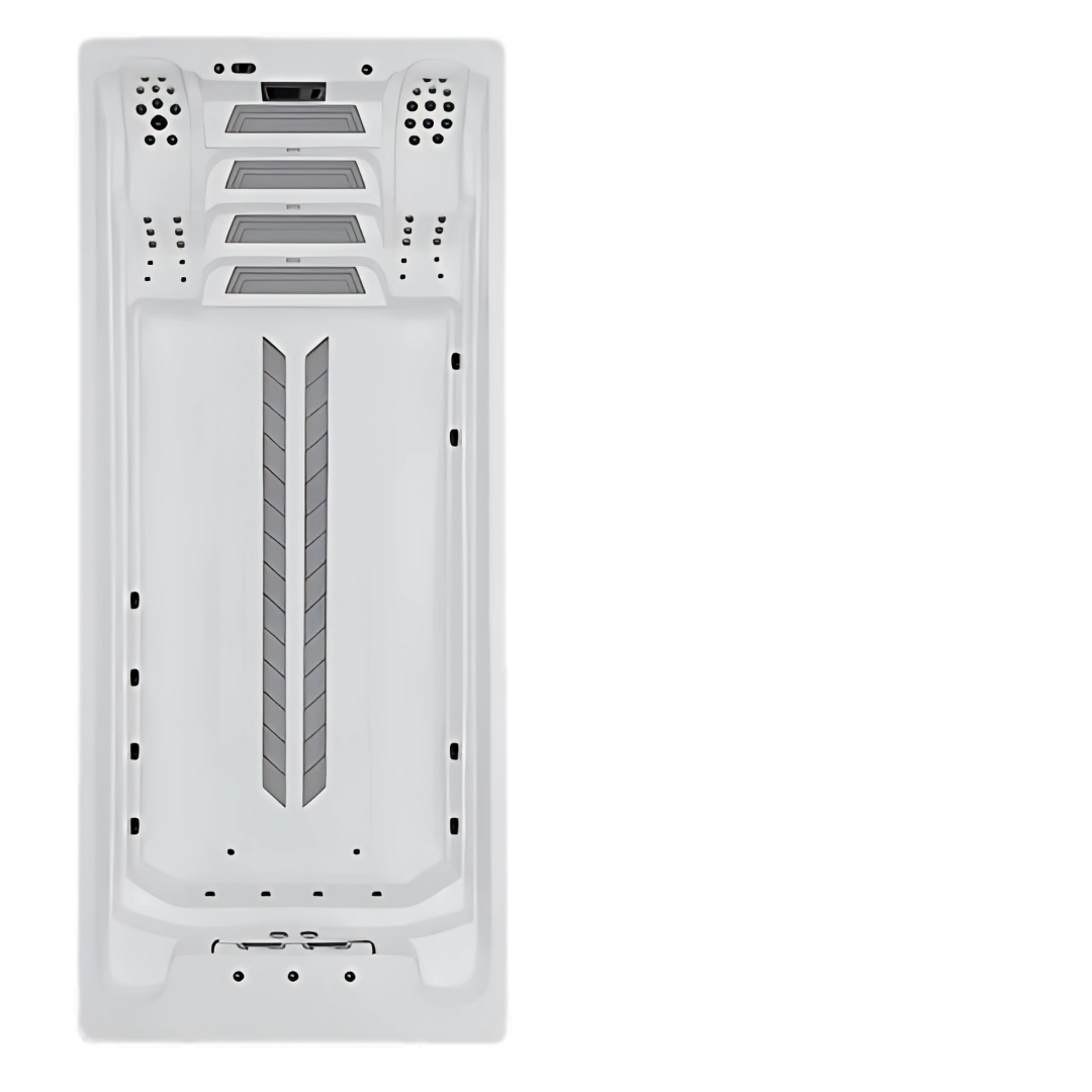 Il potente sistema controcorrente con tre pompe da 3,0HP e getti di nuoto a forma di U assicura un flusso potente e uniforme, ideale per l'allenamento intensivo del nuoto e il massimo del fitness nella vostra spa.