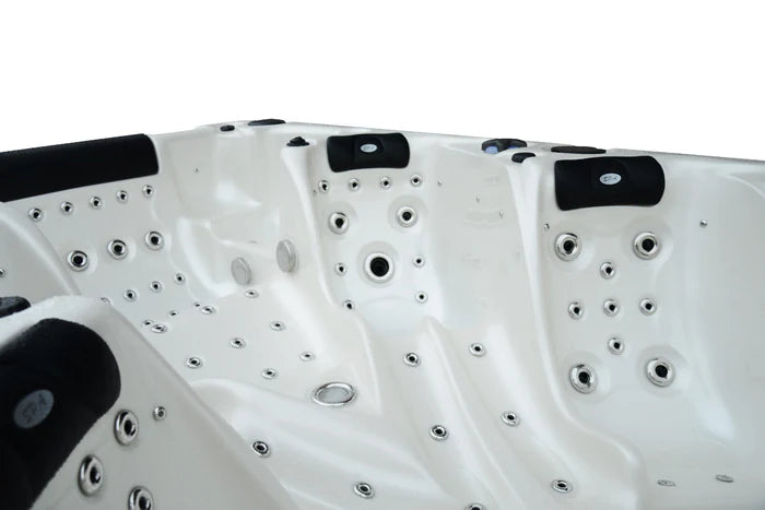 Il potente sistema controcorrente con tre pompe da 3,0HP e getti di nuoto a forma di U assicura un flusso potente e uniforme, ideale per l'allenamento intensivo del nuoto e il massimo del fitness nella vostra spa.