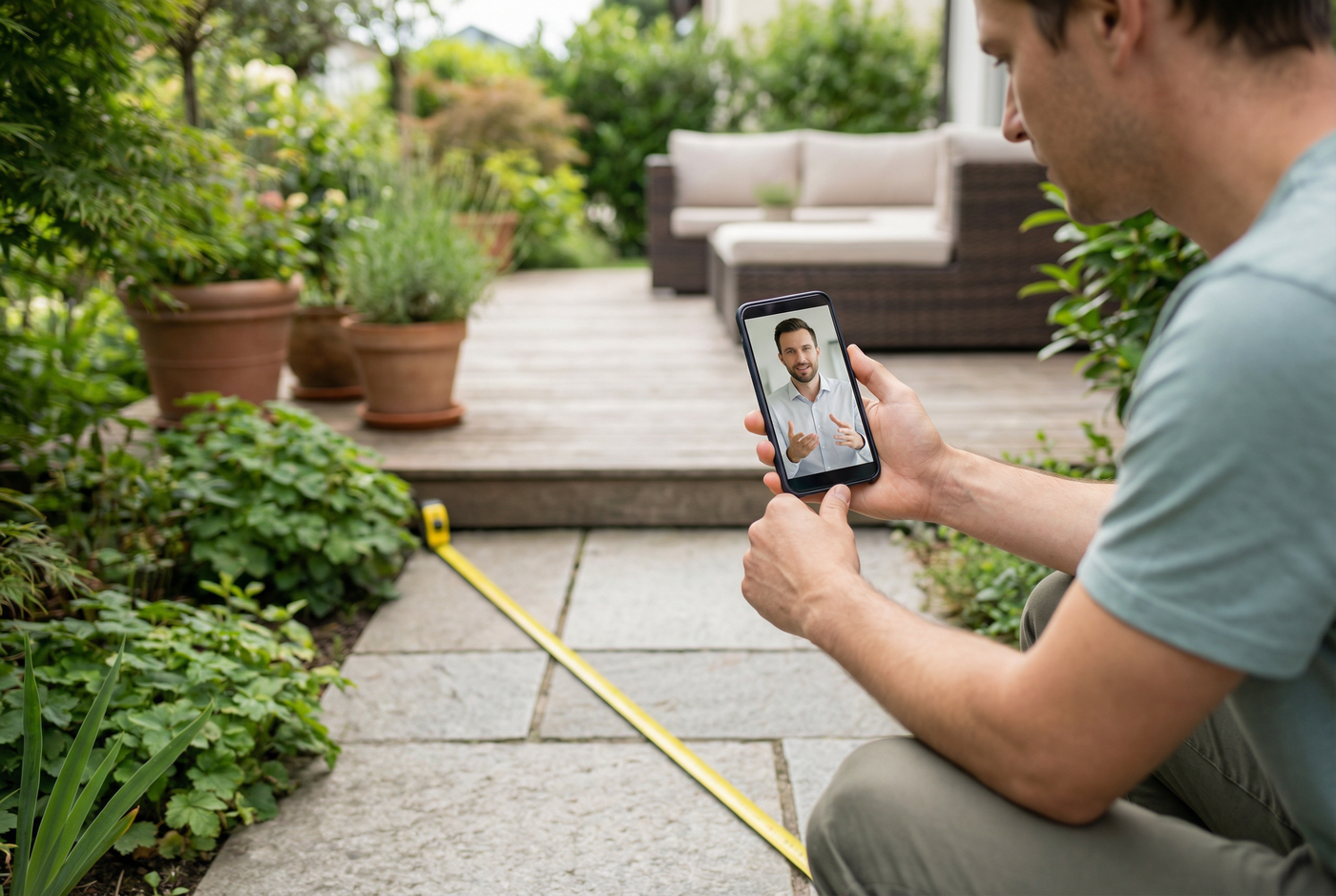 Im Video-Call schauen wir uns deinen Garten oder deine Terrasse live an und klären alles, was für eine saubere Planung notwendig ist – strukturiert, effizient und verbindlich.