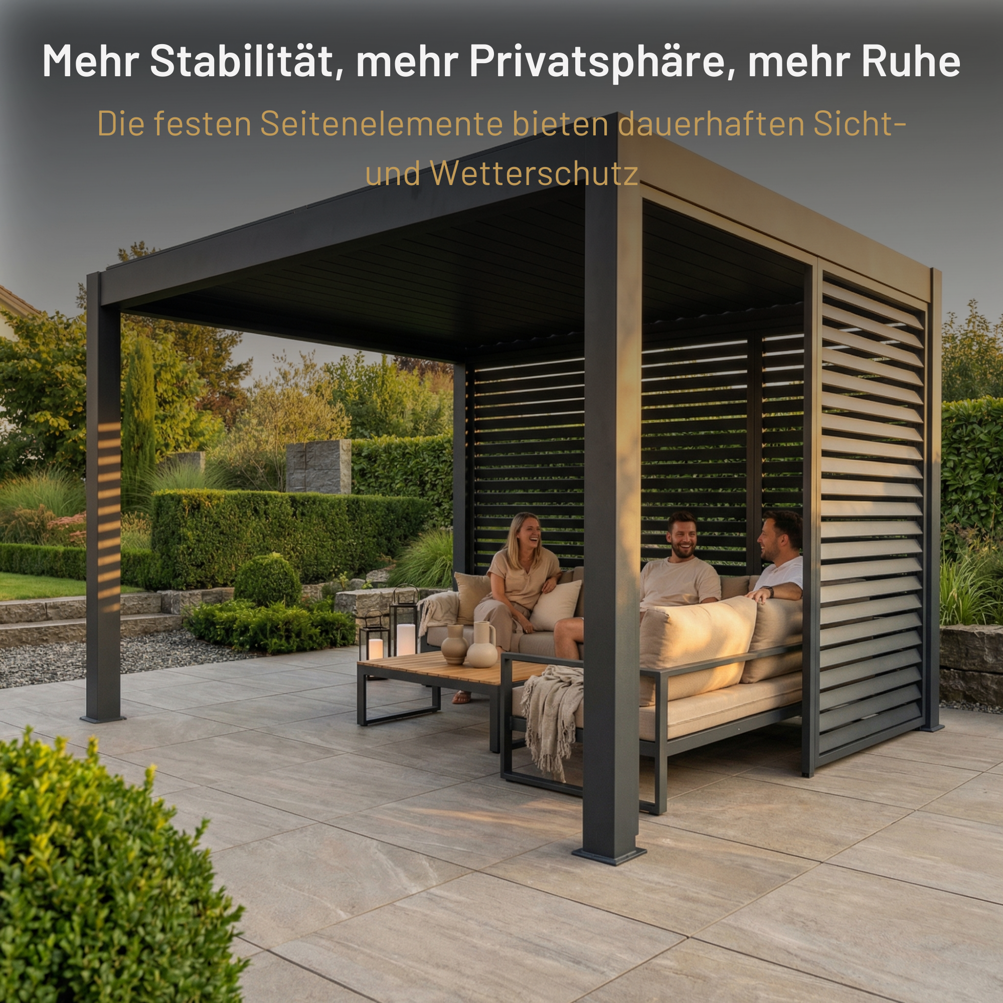 Unsere Lamellenwand ist speziell für eine breite Palette von Pergola-Modellen in unserem Sortiment entwickelt worden.