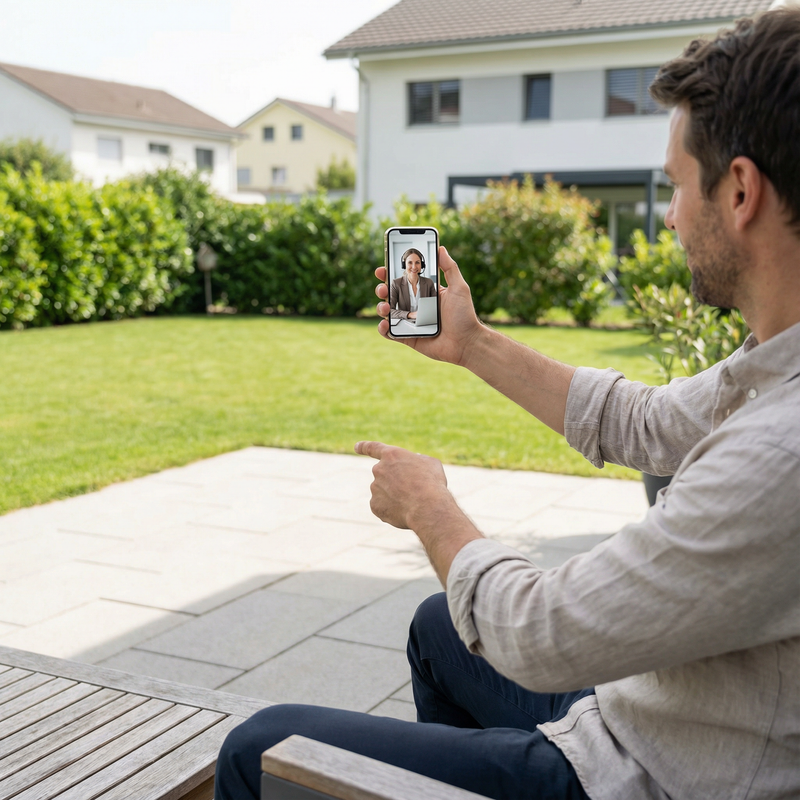 Im Video-Call schauen wir uns deinen Garten oder deine Terrasse live an und klären alles, was für eine saubere Planung notwendig ist – strukturiert, effizient und verbindlich.