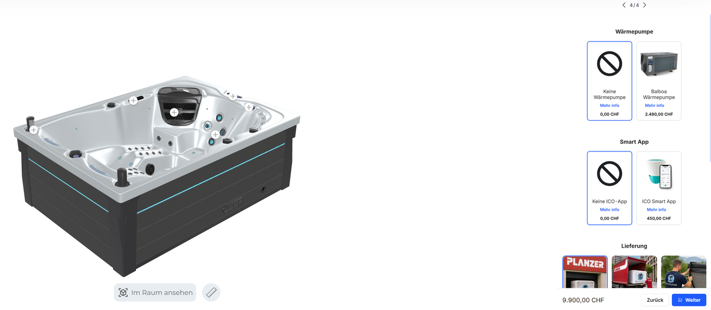 Im Konfigurator siehst du deine Spa- oder Pergola-Lösung von Anfang an realistisch.
