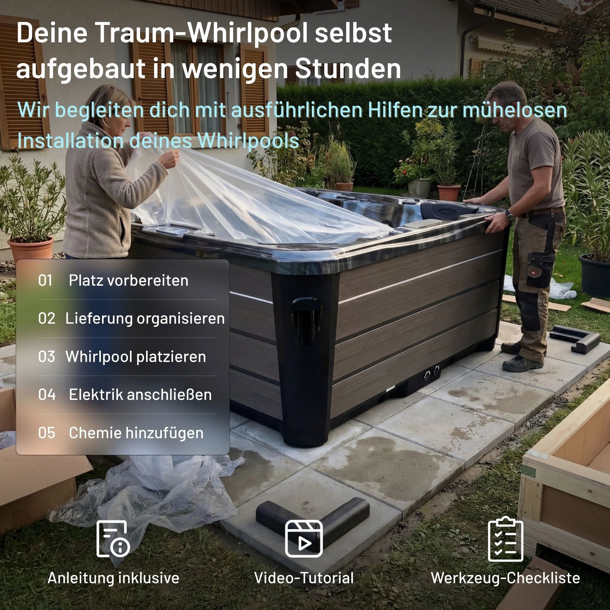 Über 5.500 zufriedene Kunden haben wir bereits auf dem Weg zu ihrer Traum-Whirlpool begleitet – von der ersten Frage bis zur finalen Montage.