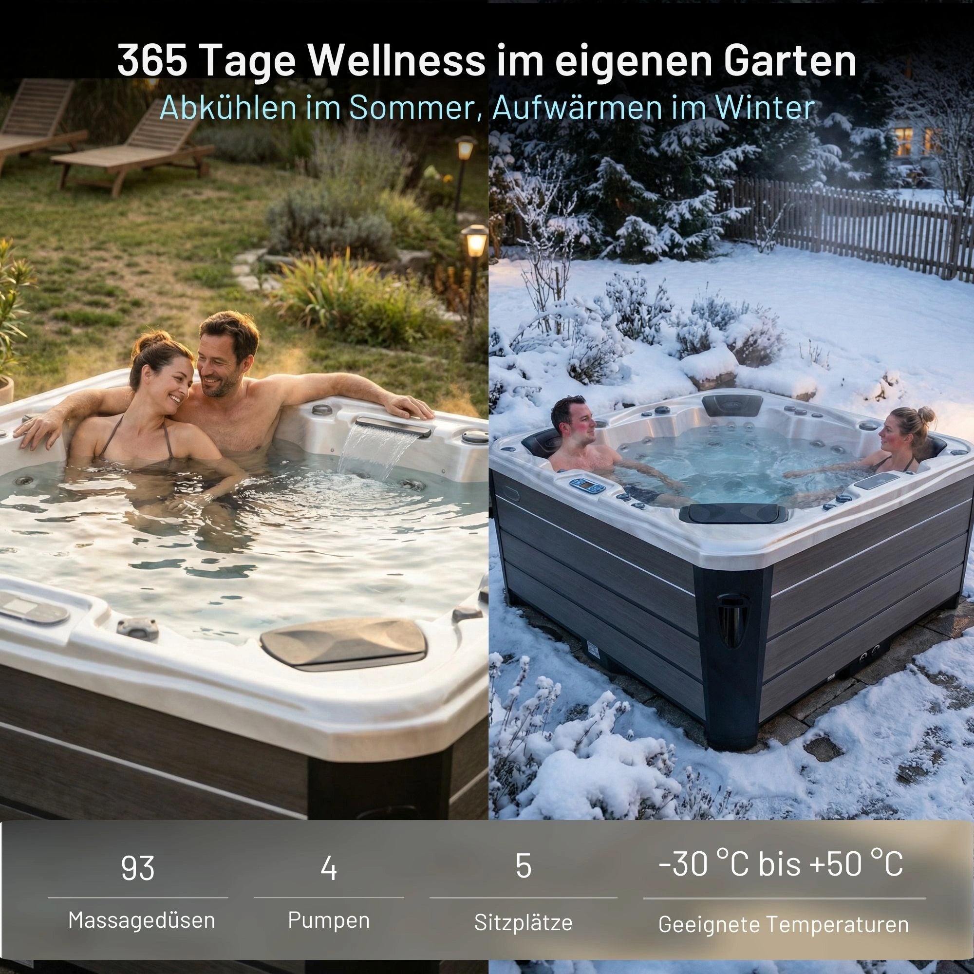 Ja, unsere Whirlpools sind vollständig wintertauglich – auch bei Temperaturen bis -30 °C. Sie können ganzjährig betrieben und bei Bedarf auf bis zu 40 °C aufgeheizt werden.