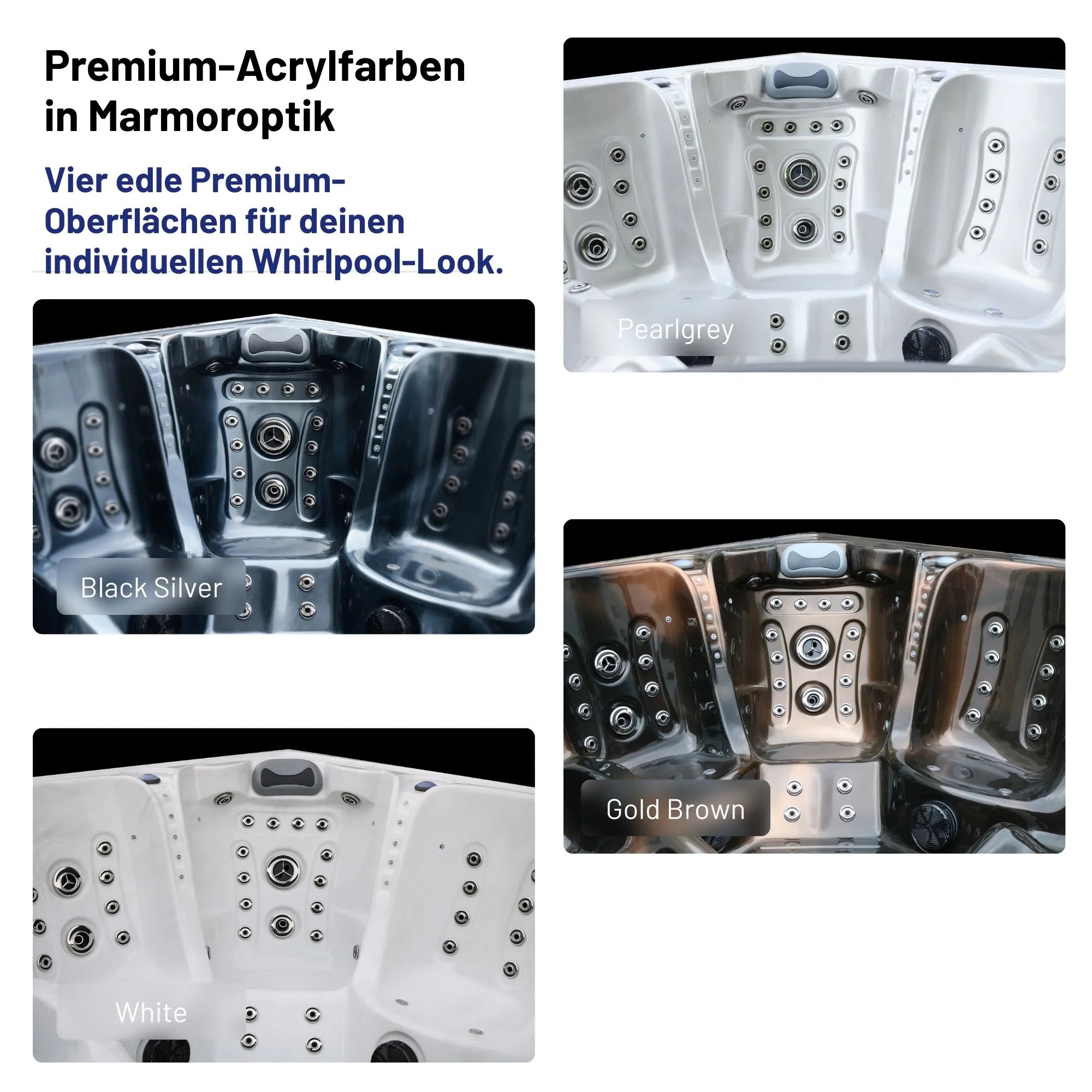 Unsere Whirlpools sind in folgenden Farbvarianten erhältlich: